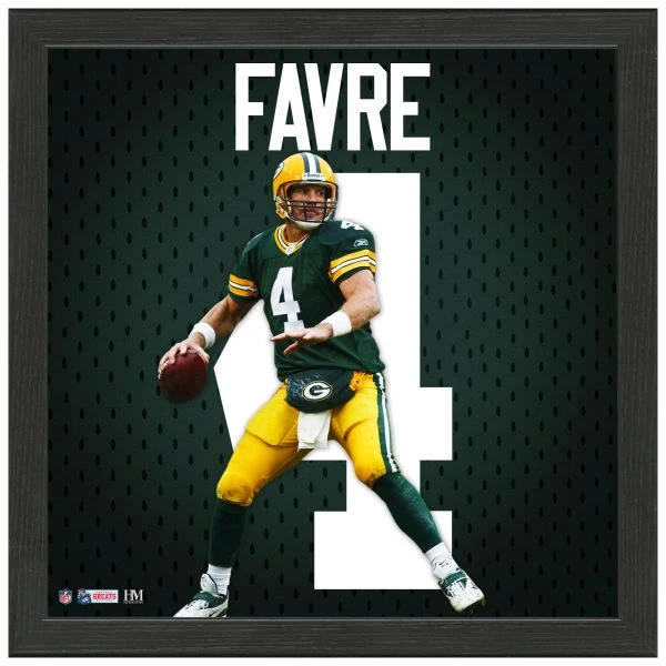 Der ca. 33x33cm große Holzrahmen ist verglast und beinhaltet ein großes Bild vom NFL Spieler und Nummer als Hintergrund.