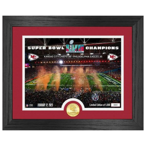 Das 40x33cm Bild zeigt den Super Bowl LVII-Champion Kansas City Chiefs auf dem Spielfeld nach dem Sieg.