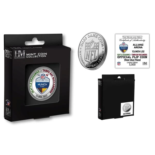 Die Münze ist mit dem Teamlogo auf der Vorderseite und dem NFL-Wappen auf der Rückseite geprägt.