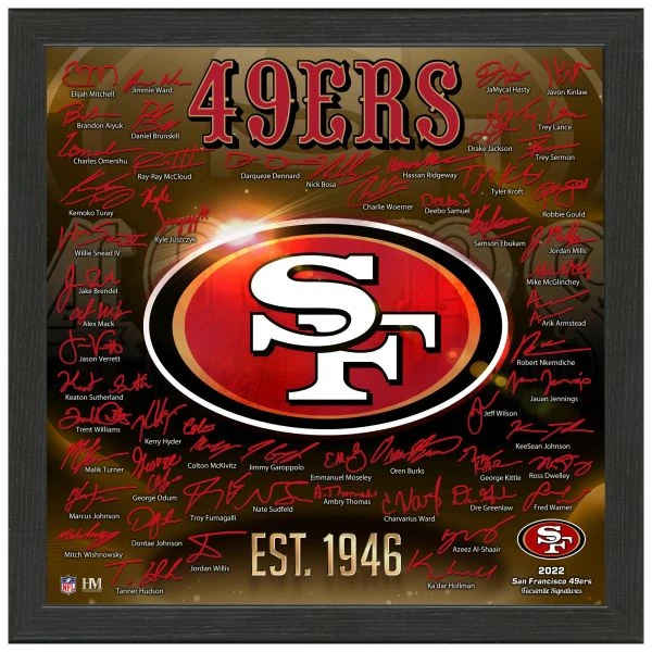 Der 33x33cm große Rahmen ist verglast und beinhaltet Bild von Team Logo und Spieler Unterschriften aus dem Roster 2022/2023.